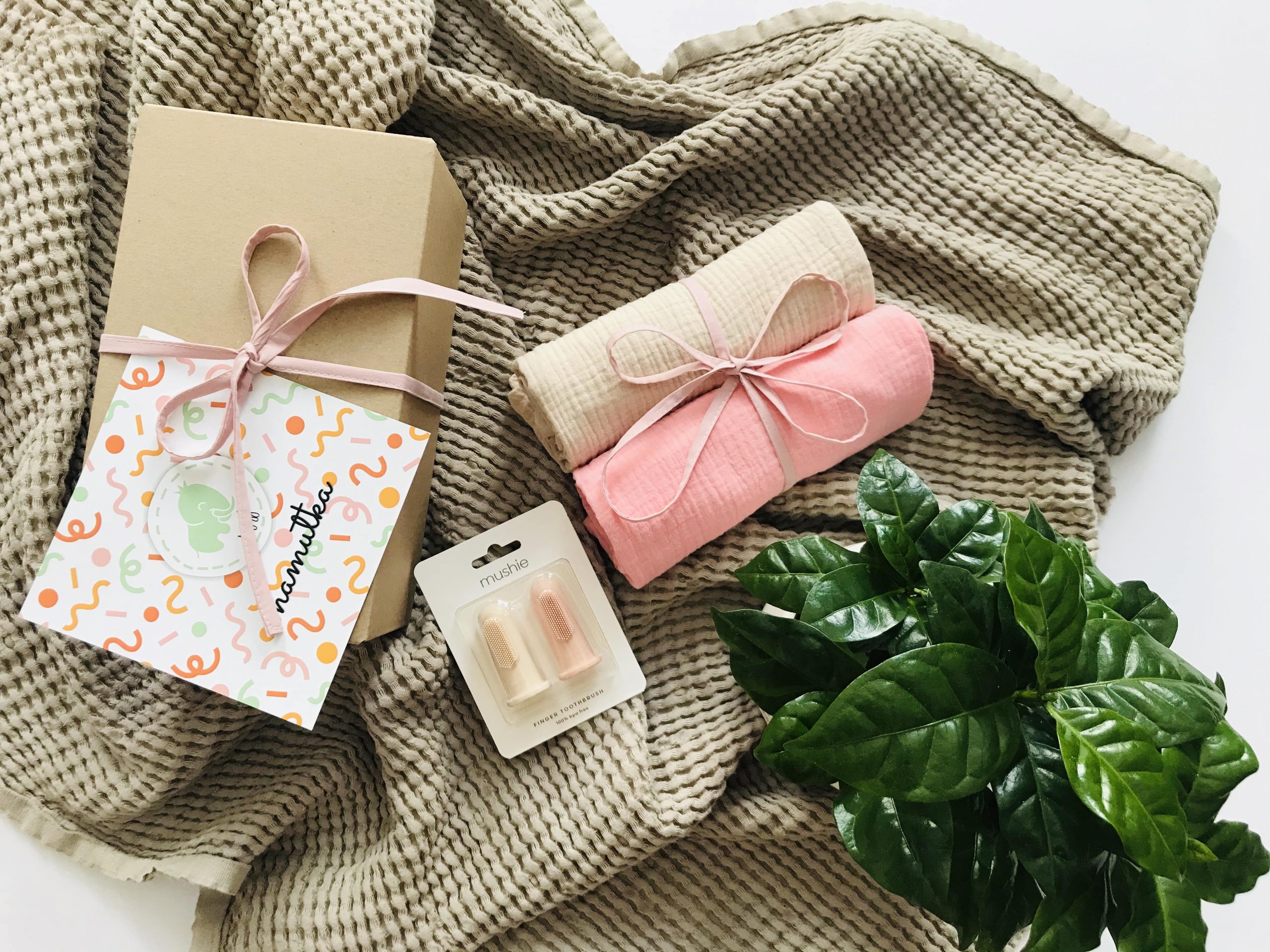 - 2 muślinowe pieluszki,