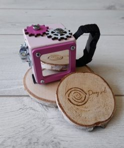 • zatrzask plastikowy (który nie tylko zainteresuje dziecko ale również umożliwi przypięcie kostki np. do wózka)