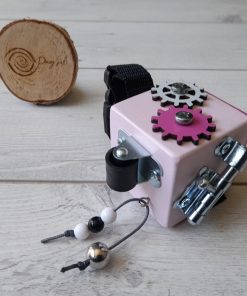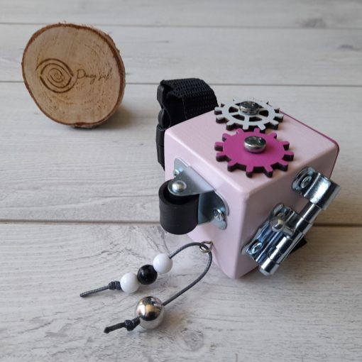 • zatrzask plastikowy (który nie tylko zainteresuje dziecko ale również umożliwi przypięcie kostki np. do wózka)