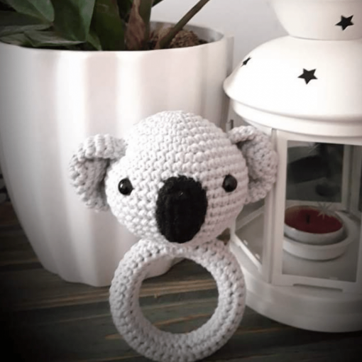 - miś koala został ręcznie wykonany na szydełku z włóczki bawełniano – akrylowej posiadającej certyfikat Oeko-Tex Standard 100, zawiera element grzechoczący oraz wypełniony jest antyalergiczną kulką silikonową.