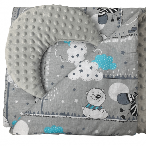 - kolor: bawełna misie i żyrafy i Minky szary,