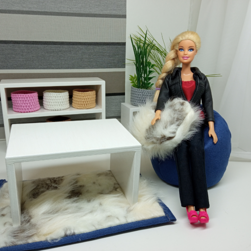 Mebelki kolekcjonerskie w skali 1:6. Meble tapicerowane wykonane są z profesjonalnych materiałów tapicerskich, z wysokiej jakości ekoskóry soft , wypełnienie to pianka tapicerska , wszystko uszyte mocnymi nićmi do skóry, gwarantuje to trwałość uszytych elementów. Rękodzieło starannie wykonane, bez tektury czy kleju, co powoduje ich dużą wytrzymałość podczas zabawy.