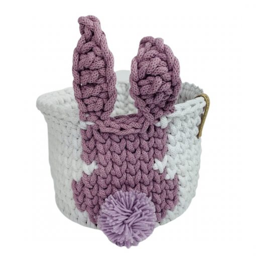 Ręcznie wykonany szydełkiem koszyczek z motywem słodkiego króliczka na różne dziecięce akcesoria czy inne „przydasie”. Estetyczne i przede wszystkim praktyczne miejsce do przechowywania. Przez swój unikatowy wygląd jest także ozdobą dziecięcego kącika. Idealnie sprawdzi się nie tylko w pokoju maluszka ale także jako dodatek dekoracyjny do łazienki czy salonu.