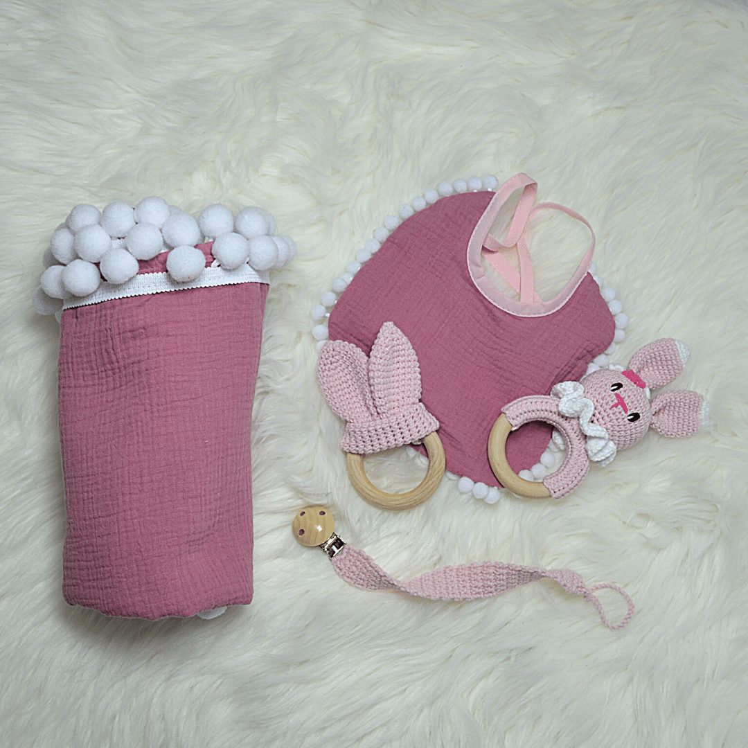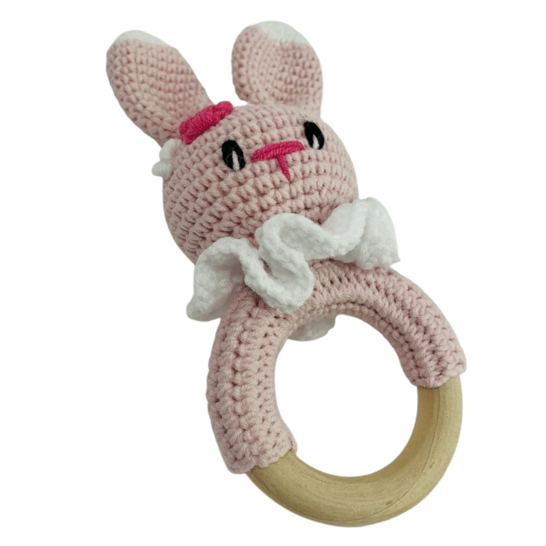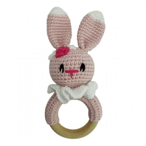 - króliczek został ręcznie wykonany na szydełku z włóczki bawełniano – akrylowej posiadającej certyfikat Oeko-Tex Standard 100, zawiera element grzechoczący oraz wypełniony jest antyalergiczną kulką silikonową.
