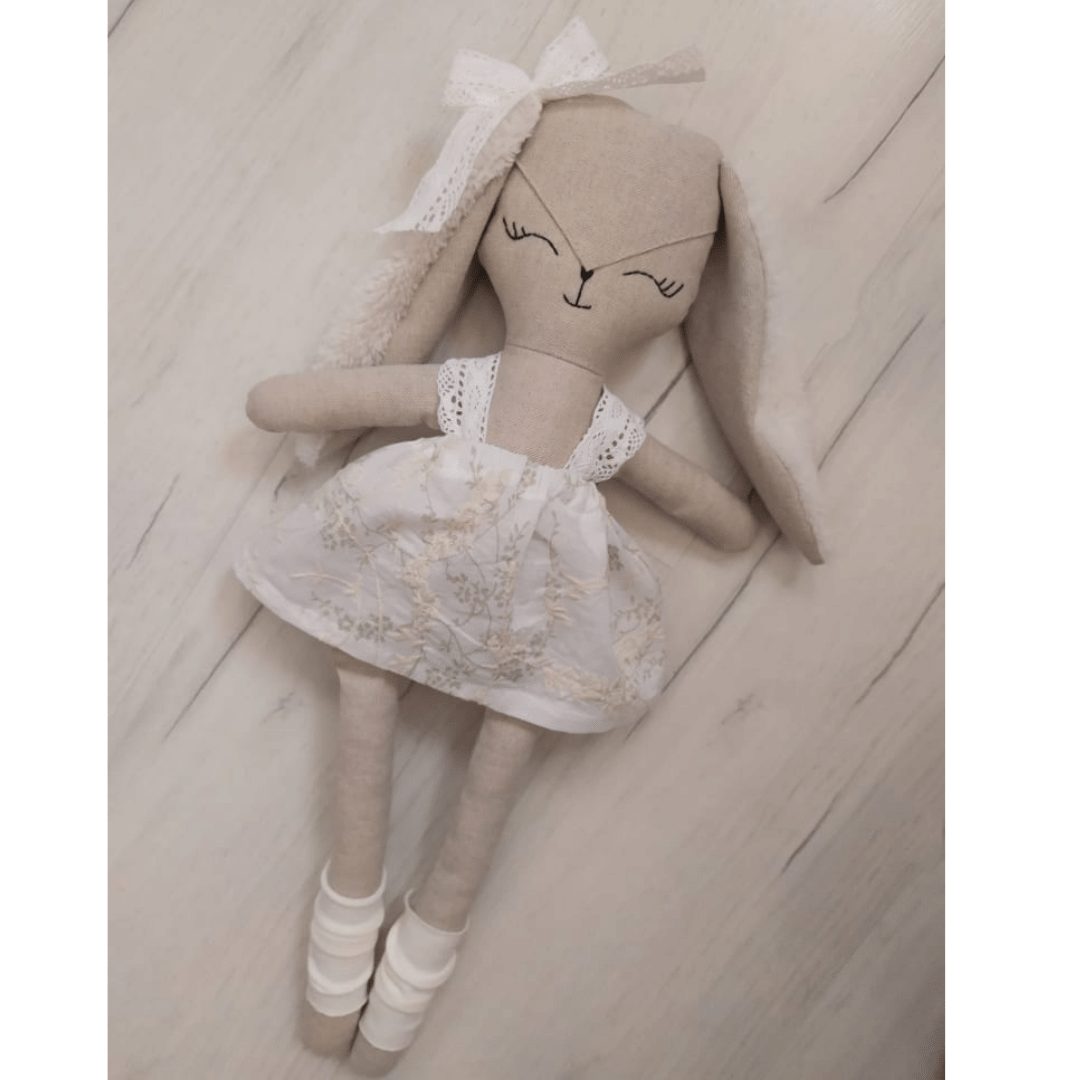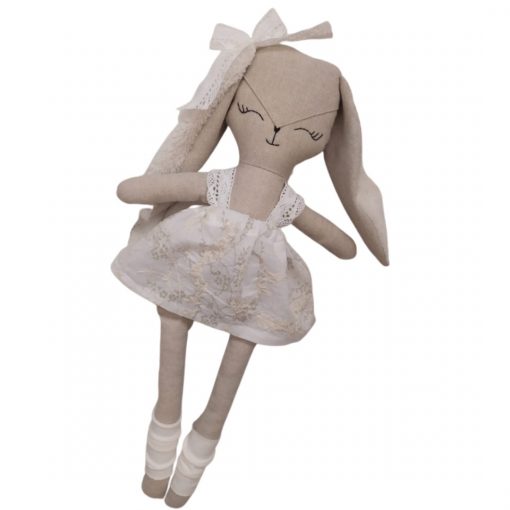 - króliczek został ręcznie wykonany z lnu i bawełny 100% posiadającej certyfikat Oeko-Tex Standard 100, wypełniony jest antyalergiczną kulką silikonową.