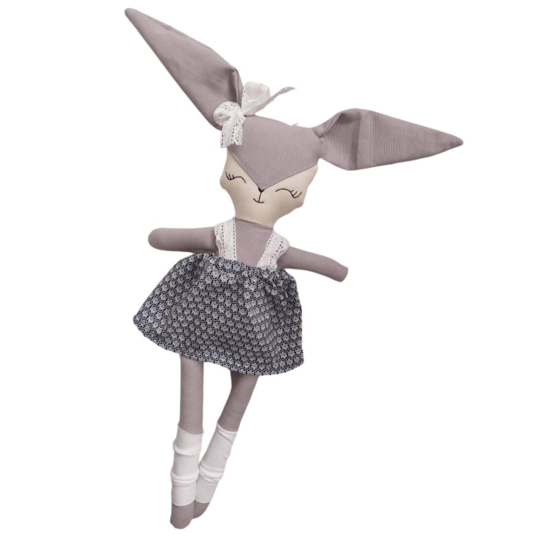 - króliczek został ręcznie wykonany z lnu i bawełny 100% posiadającej certyfikat Oeko-Tex Standard 100, wypełniony jest antyalergiczną kulką silikonową.