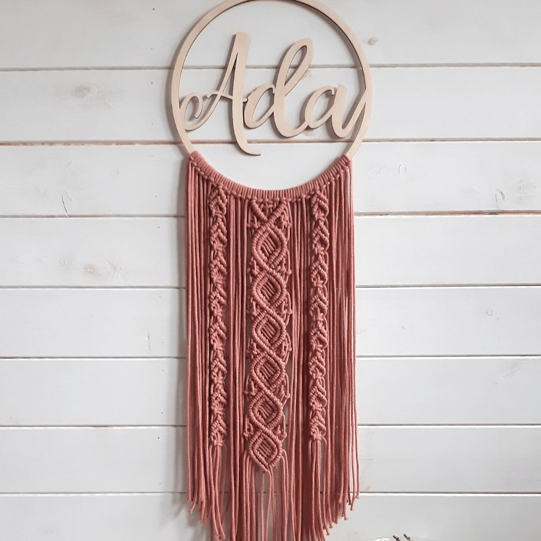 Możliwość personalizacji sprawia, że będzie idealną ozdobą do pokoju dziecięcego i nie tylko. Obręcz zrobiona jest ze sklejki, średnica wynosi 25 cm. Do wyprodukowania łapacza używa się bawełnianych plecionych sznurków 3mm wykonanych w 100% z recyklingu.
