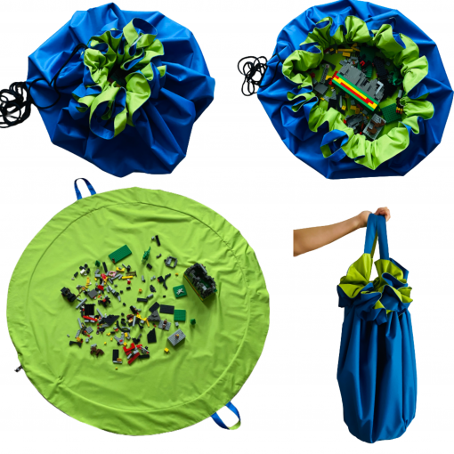 Mata wykonana jest z dwóch warstw trwałego, wodoodpornego materiału, w który wsunięty jest sznurek zakończony plastikowym ściągaczem, dzięki czemu po zabawie wystarczy go ściągnąć wraz z zabawkami i klockami, które znajdują się na macie. W ten sposób powstaje zamknięty worek, który można łatwo przenieść.