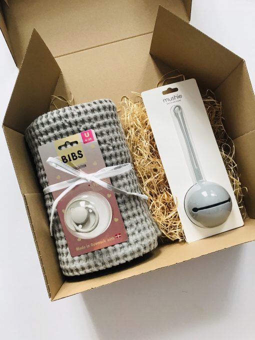 - smoczek Bibs w kolorze szarym (rekomendowany dla dzieci od 0-36 mż),