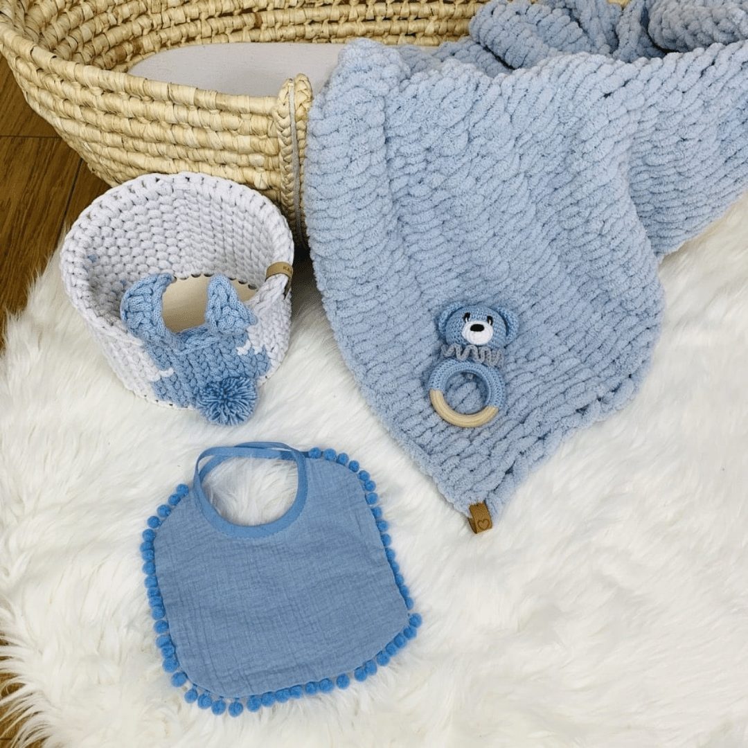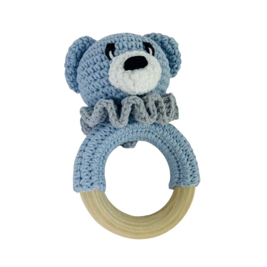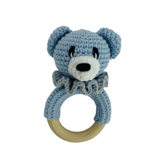 - miś został ręcznie wykonany na szydełku z włóczki bawełniano – akrylowej posiadającej certyfikat Oeko-Tex Standard 100, zawiera element grzechoczący oraz wypełniony jest antyalergiczną kulką silikonową.