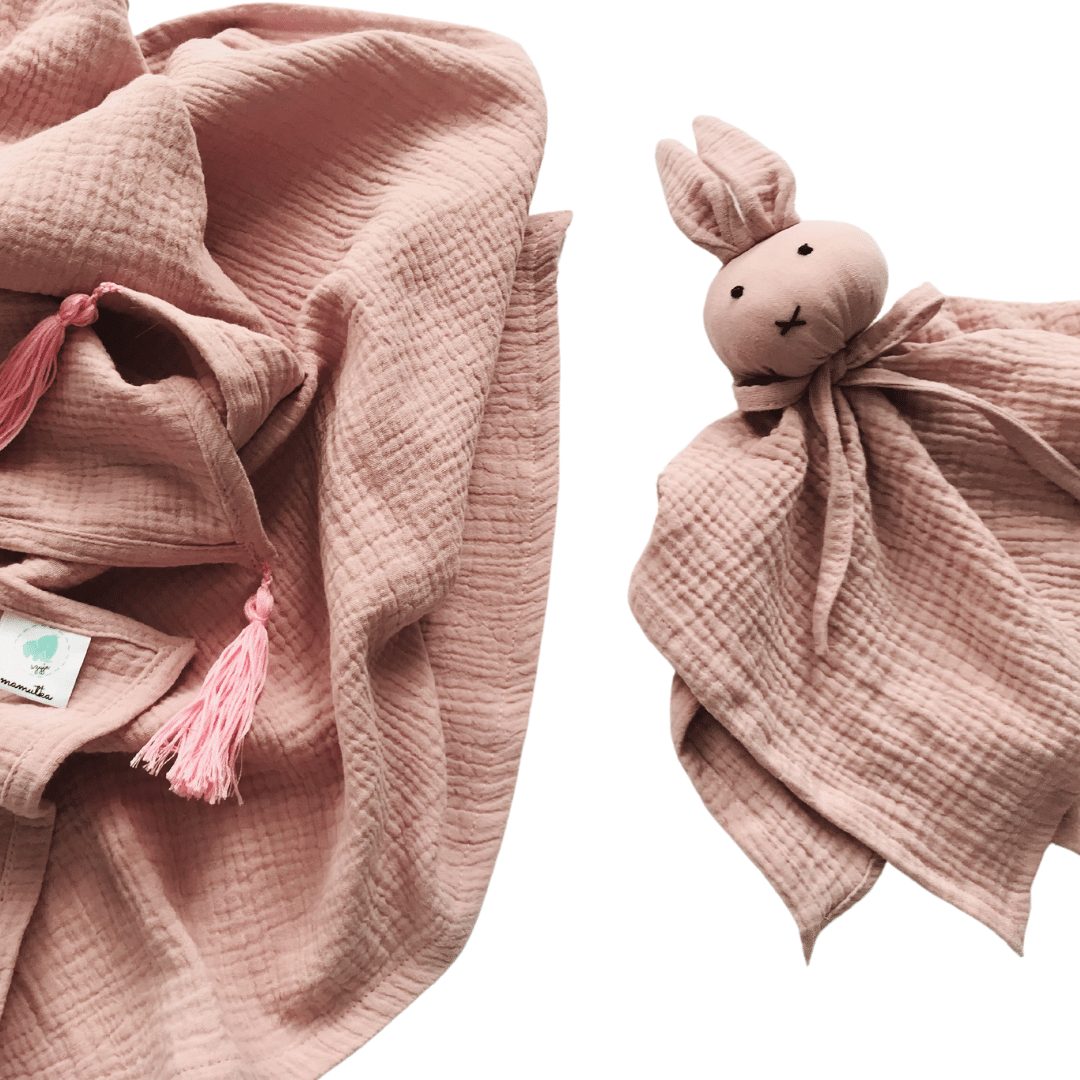 - uroczy króliczek został wykonany z muślinu oraz wypełniony antyalergiczną kulką silikonową.