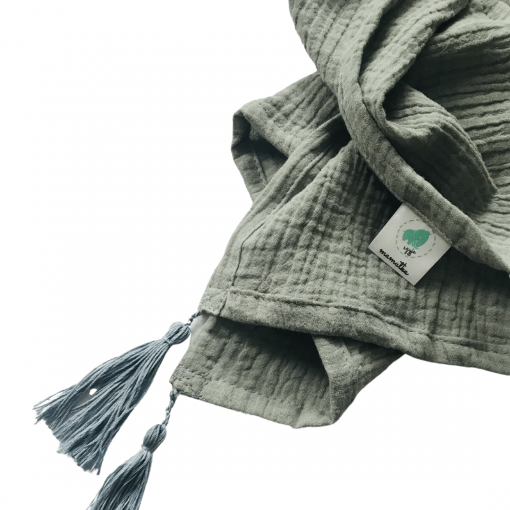 Uroczy kocyk z ręcznie wykonanymi chwostami uszyty z muślinu Double Gauze, który jest wysokiej jakości tkaniną, posiadającą w składzie 100% bawełny. Bardzo miękki i przede wszystkim naturalny materiał został wyprodukowany z myślą o delikatnej skórze maluszka. Świetnie się sprawdzi nie tylko jako kocyk ale także otulacz. Nasze kocyki są z bawełnianego muślinu, który dodatkowo jest bardzo przewiewny.