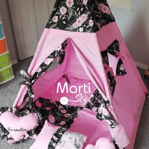 Ręcznie uszyty namiot tipi z motywem kwiatów idealnie się sprawdzi jako kryjówka czy baza w pokoju dziecięcym. Tipi przyniesie mnóstwo radości Twojemu dziecku.