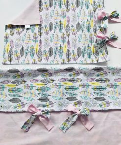 Pościel jest na zakładki zaszywane po bokach i dodatkowo wiązane kokardami, które poza swoją funkcją zabezpieczającą pościel przed wysuwaniem się z poszewki pełnią również funkcję dekoracyjną.