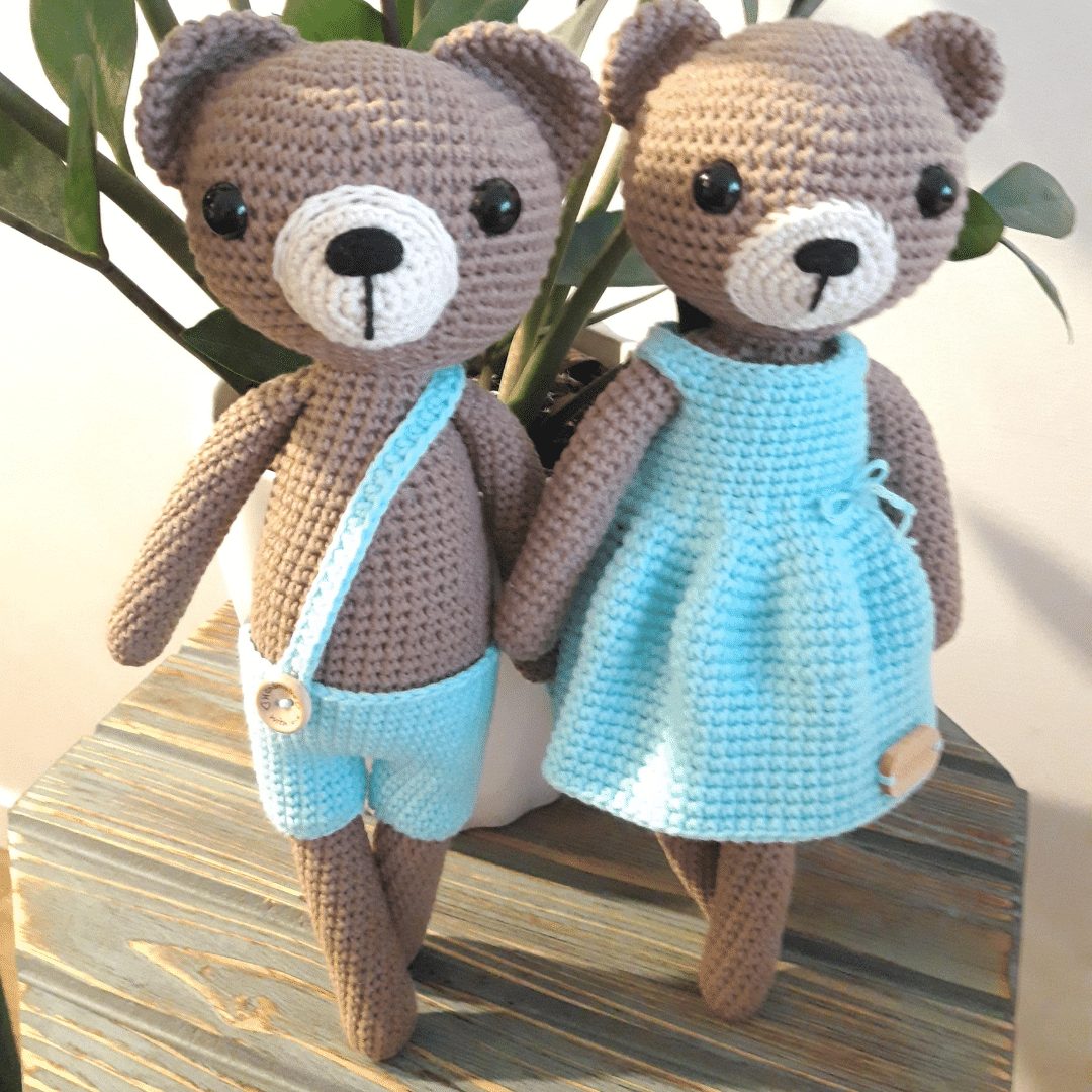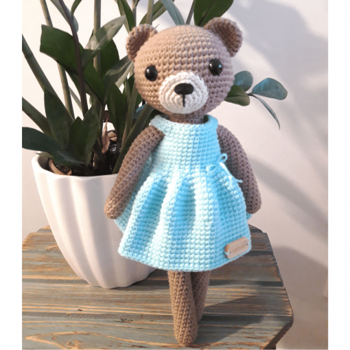 - miś został ręcznie wykonany z włóczki bawełniano-akrylowej posiadającej certyfikat Oeko-Tex Standard 100, wypełniony jest antyalergiczną kulką silikonową, oraz posiada bezpieczne oczy.
