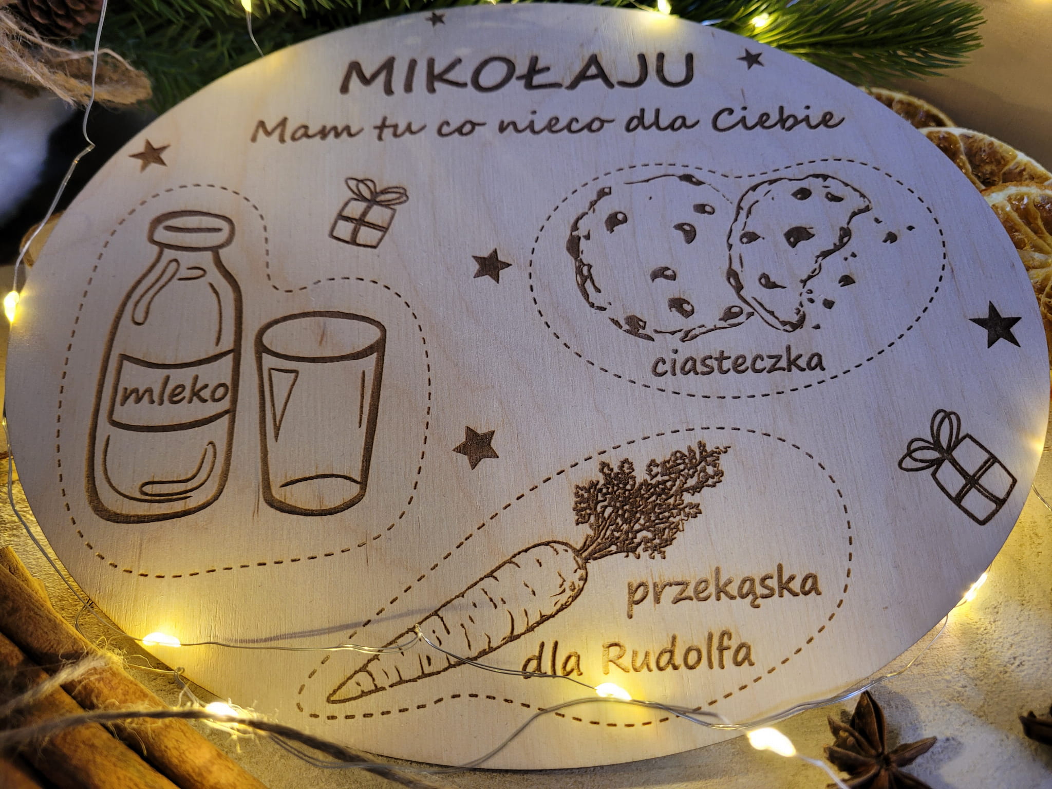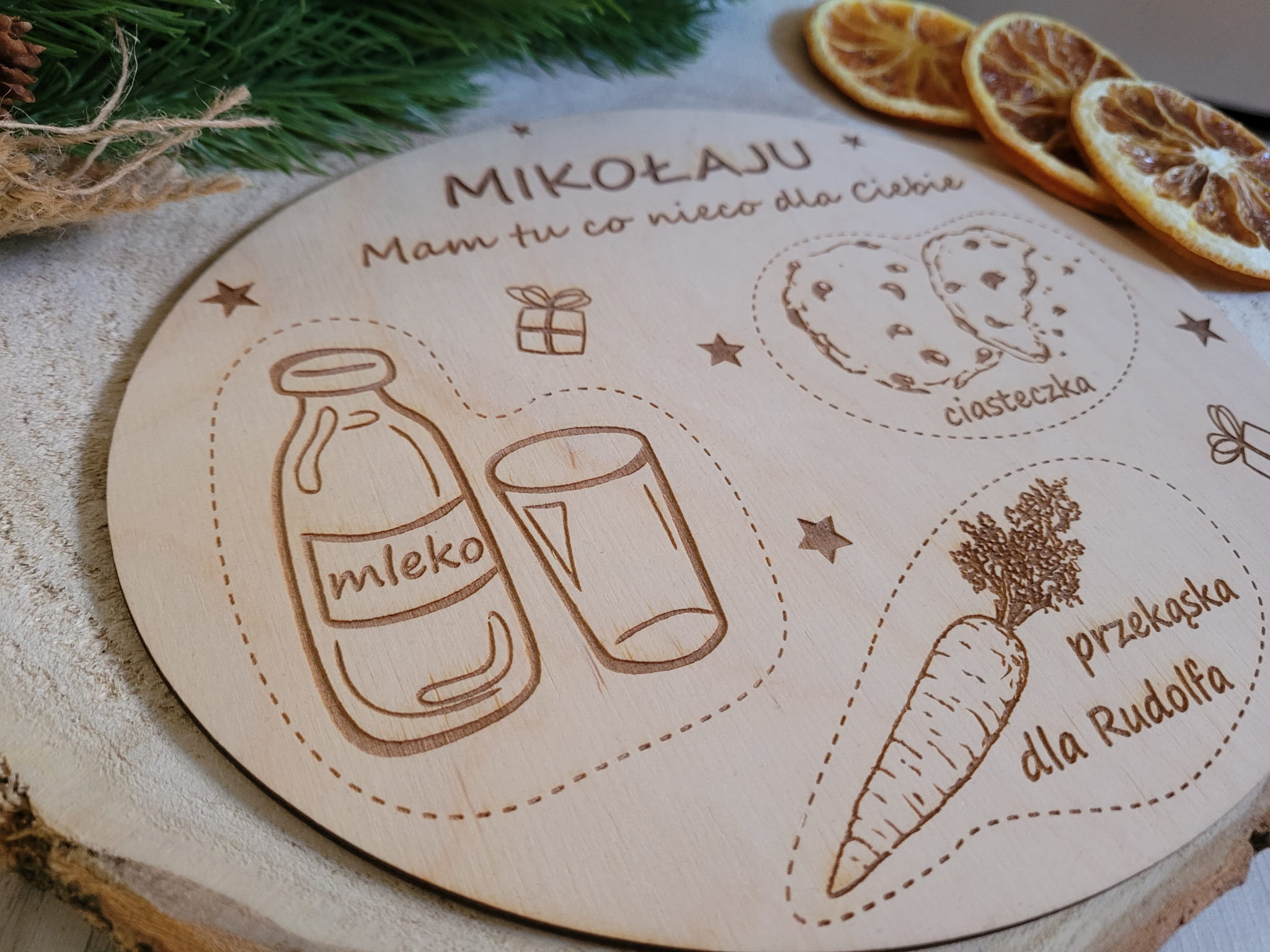 Wszystkie grzeczne dzieci czekają na prezenty od Mikołaja, ale pamiętajcie, żeby pomyśleć także o nim! Mikołaj ma do odwiedzenia mnóstwo domów, więc czeka go bardzo dużo pracy. Talerzyk dla Mikołaja podpowie nam, czego mu trzeba. Szklanka mleka, ciasteczko i przekąska dla jego przyjaciela Rudolfa z pewnością sprawią, że Mikołaj chwilkę odpocznie i nabierze sił do dalszego działania i dalekiej drogi do swojego domu.